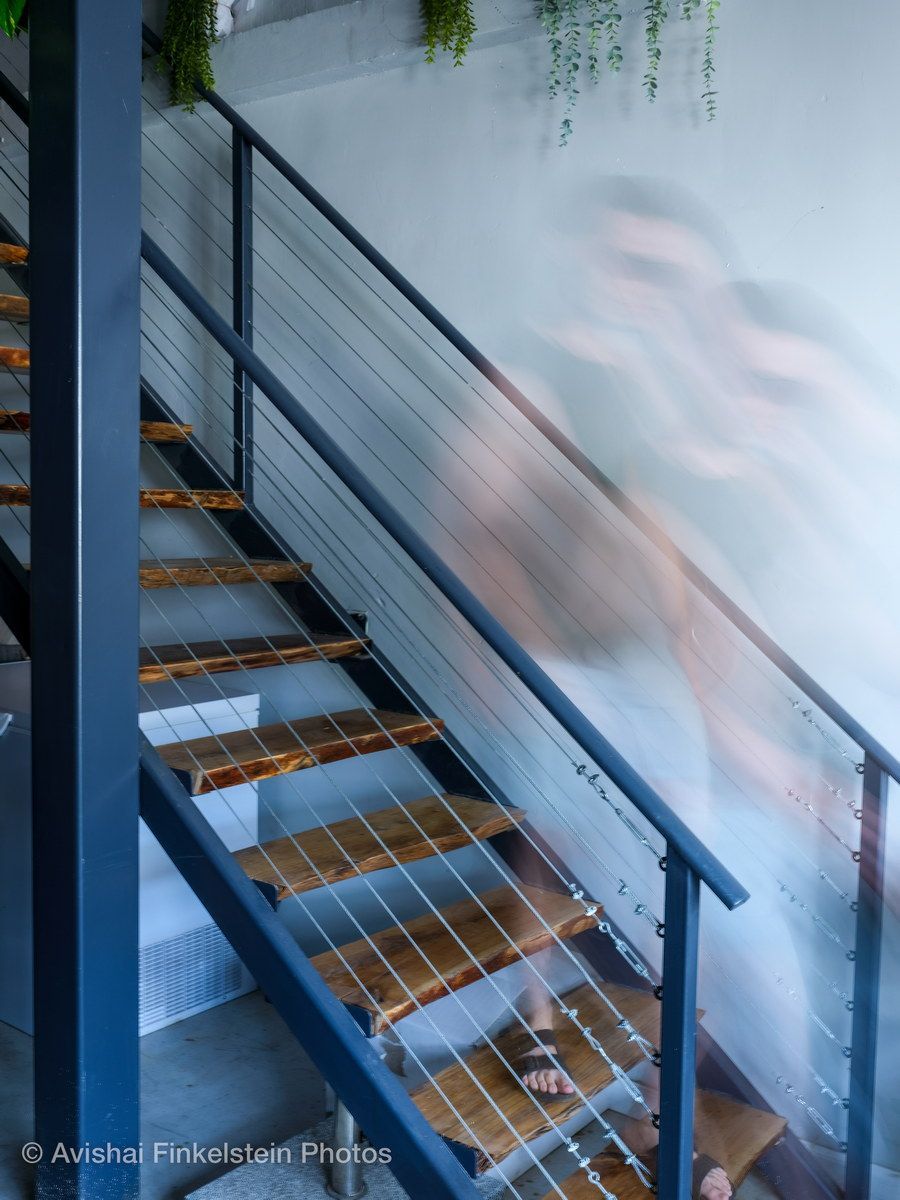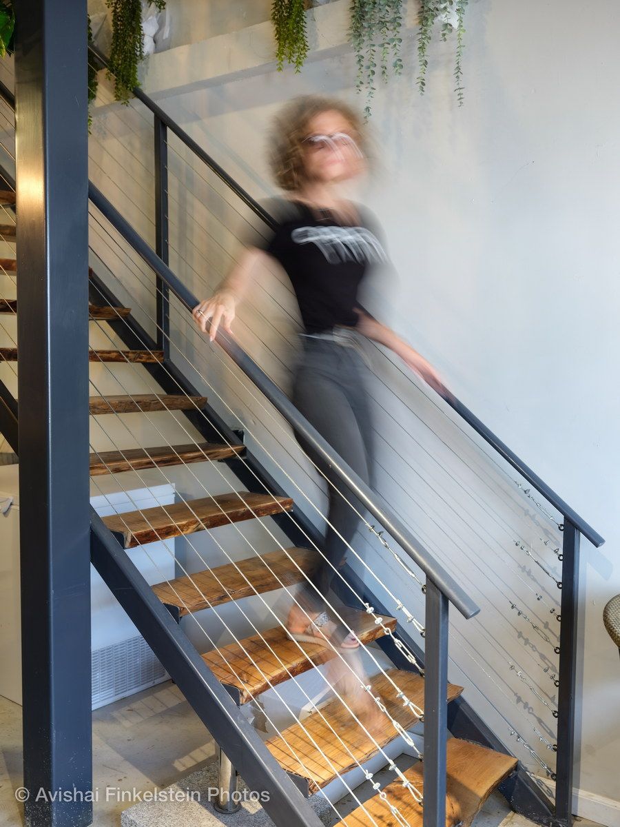 הוספנו מדרגות מרחפות במטרה להוסיף מקומות ישיבה ו 'זולה' בקומה העליונה.
