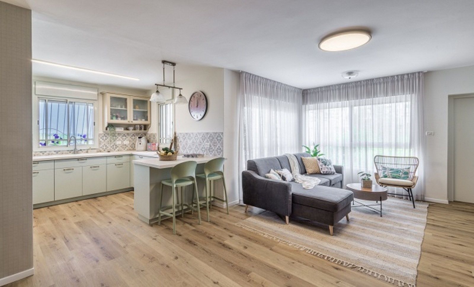 יחד יצאנו למסע משותף למיקסום הפוטנציאל של הדירה. הסגנון שהתאים להם ולדירה היה סיגנון שנהוג לקרוא לו 'כפרי - לייט'. לשמחתי, המשפחה לא חששה מצבעוניות בכל חללי הבית.