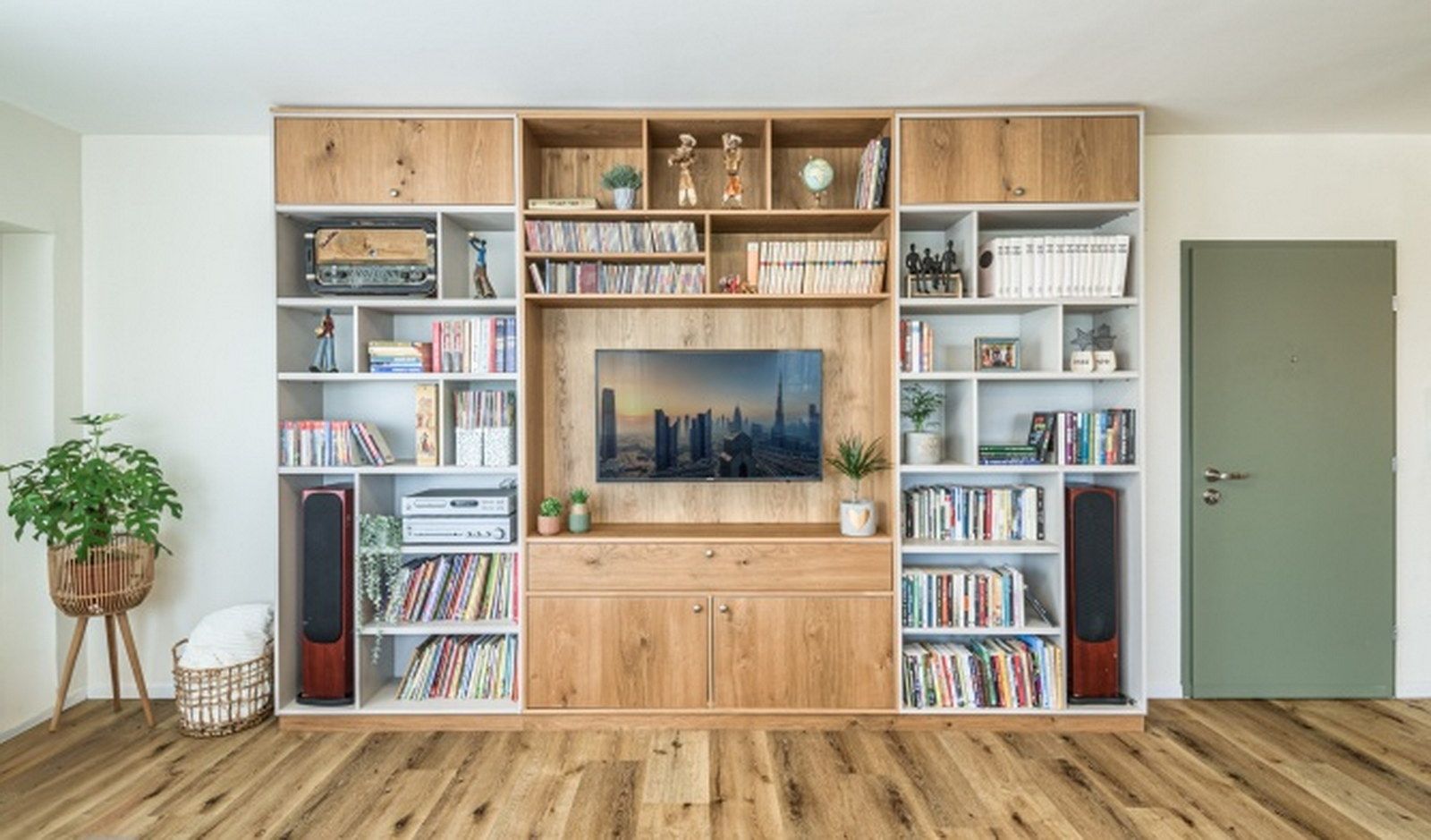 הדרישה העיקרית הייתה להרחיב את אזור פינת האוכל כך שיתאים למשפחה גדולה ולאירוח.ויתרנו על שירותי האורחים לצורך הרחבת השטח הציבורי, והגדלנו את חדר הרחצה של הילדים והוא חובר למרפסת שירות. הספרייה הקיימת בבית עברה מיחדוש ותוכננה כך שהגדלנו אותה למידות הסלון החדש והיא הפכה להיות קיר הכוח המרשים בסלון.